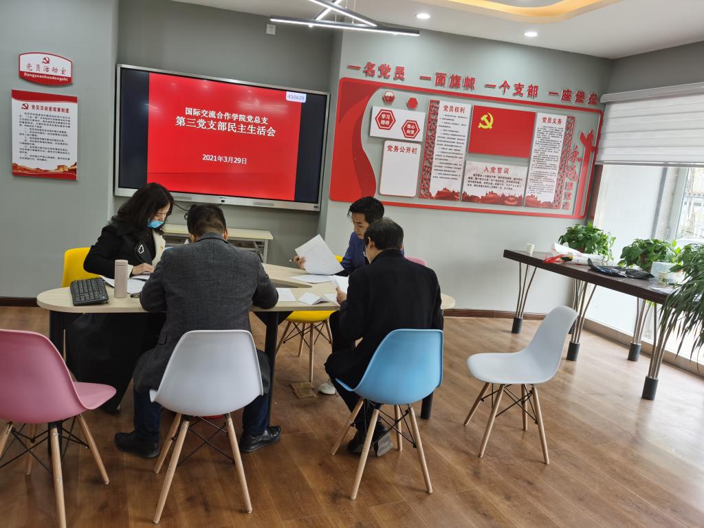 3月29日,按照公司党委的部署和要求,国际交流与合作公司党总支第三党支部全体党员在beats365亚洲版官网会议室召开组织生活会,全体党员参加活动。活动由第三党支部书记王丹主持。