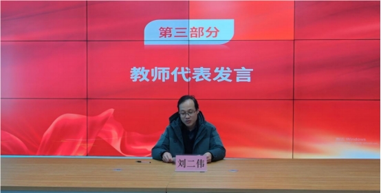 教师代表刘二伟老师给同学们提出了宝贵的学习建议,并代表所有教师做出了庄严承诺,竭尽所能为大家提供优质教学服务,勉励大家抓住每一个学习的机会,锻炼自己。祝愿新生学有所获、学有所成。