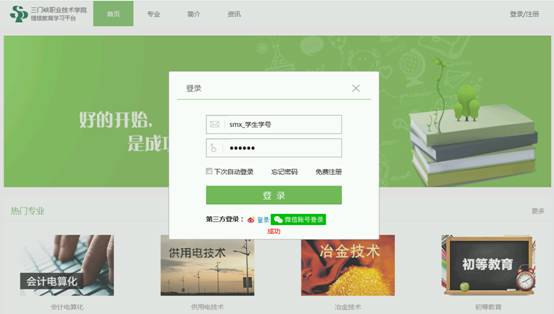 学员点击“登录/注册”即弹出信息录入页面,学员输入本人用户名和密码后点击