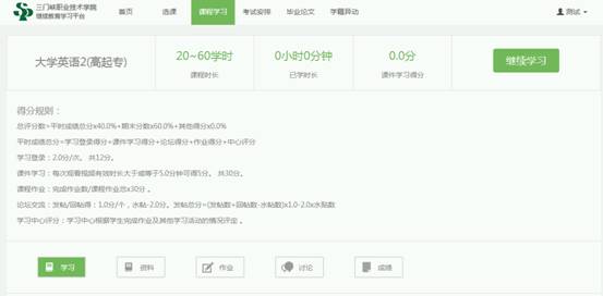 课件学习:即学员通过观看网络课件获得部分平时成绩,计分规则为: