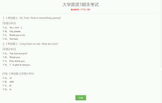 考试开始后,即开始进行计时。学员必须在规定的时间内完成作答并提交