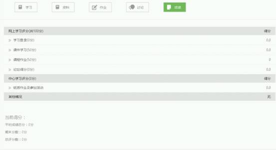 平时成绩:即网络学习成绩总成绩,总分为100分,包含课件学习、课程作业