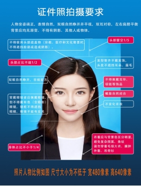 4.采集时要真实表达员工本人相貌,请勿化浓妆和美颜,禁止对图像整体或局部进行镜像、旋转等变换操作,不得对人像特征进行修饰处理等;采集的图像信息须是正面免冠照,头发放在耳后,不得遮挡眉毛、眼睛和耳朵;着装应与背景色有明显区别,不穿蓝色衣服或与肤色相近的黄色衣服(背景为自动生成的天蓝色),不穿有复杂的图案、条纹衣服。