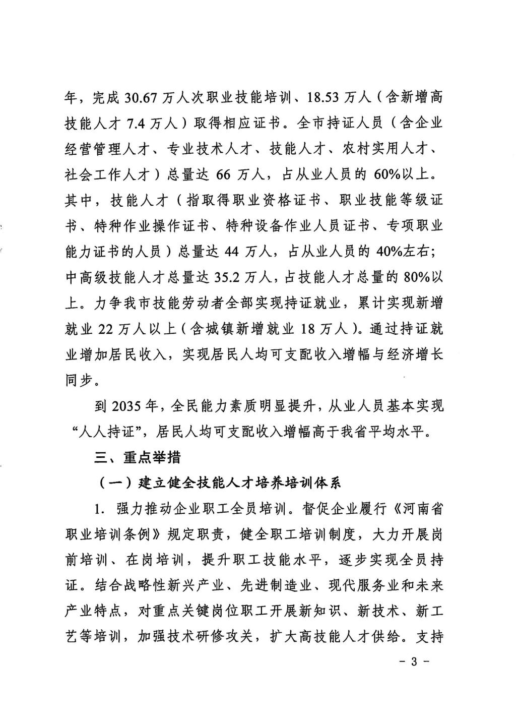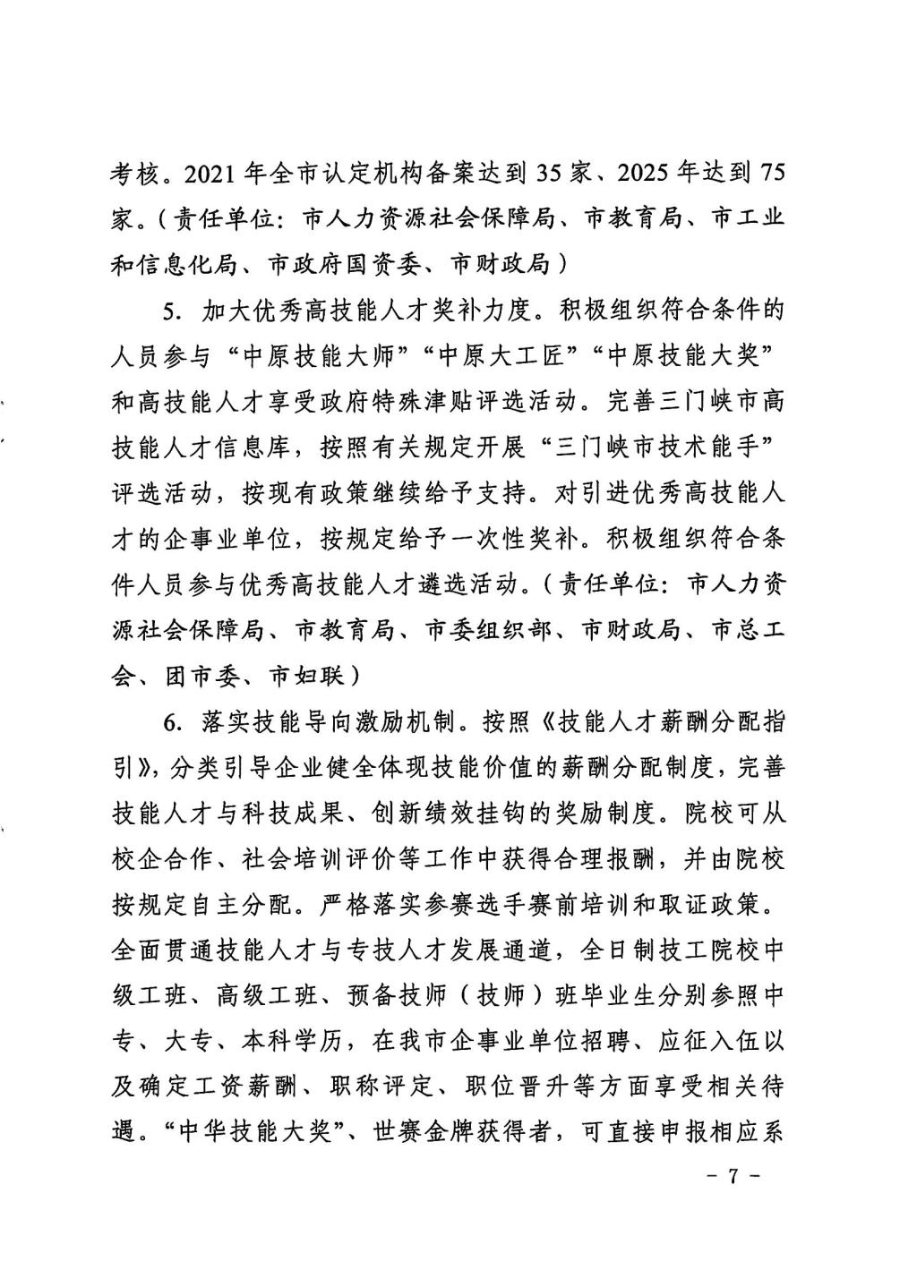 三门峡市委市政府关于印发“人人持证、技能河南”实施方案的通知