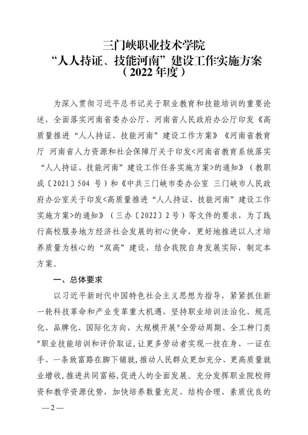 公司《“人人持证、技能河南”建设工作实施方案》